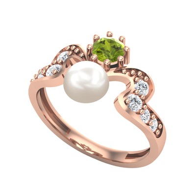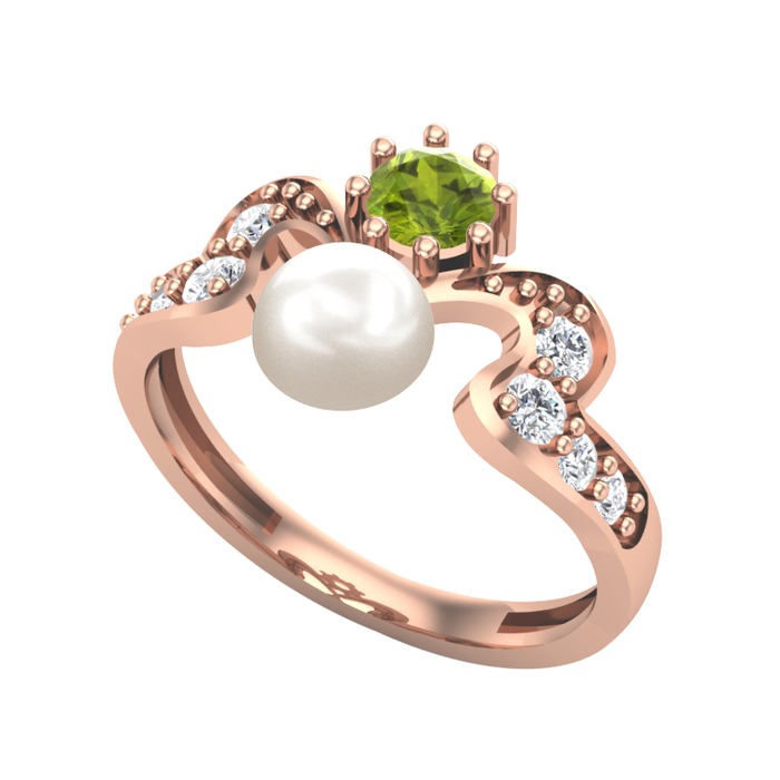 Inci, peridot ve pırlanta 18 ayar rose altın yüzük (0.48 karat)