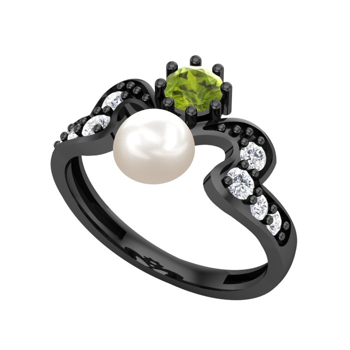 Inci, peridot ve pırlanta 925 ayar siyah rodyum kaplama gümüş yüzük (0.48 karat)