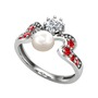 Inci, pırlanta ve garnet 14 ayar beyaz altın yüzük (0.35 karat)