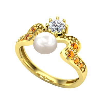Inci, pırlanta ve sitrin 8 ayar altın yüzük (0.35 karat)