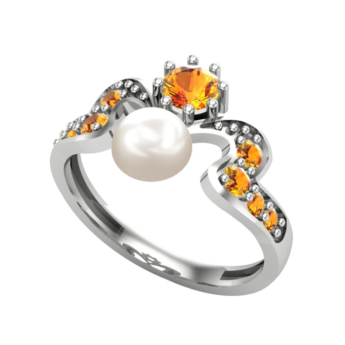 Inci ve sitrin 18 ayar beyaz altın yüzük