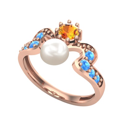 Inci, sitrin ve akuamarin 14 ayar rose altın yüzük