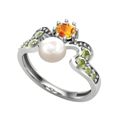 Inci, sitrin ve peridot 18 ayar beyaz altın yüzük