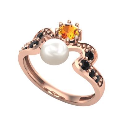 Inci, sitrin ve siyah zirkon 18 ayar rose altın yüzük