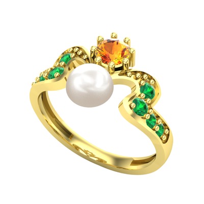 Inci, sitrin ve yeşil kuvars 14 ayar altın yüzük