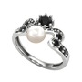 Inci ve siyah zirkon 14 ayar beyaz altın yüzük