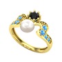 Inci, siyah zirkon ve akuamarin 18 ayar altın yüzük