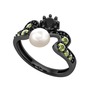 Inci, siyah zirkon ve peridot 925 ayar siyah rodyum kaplama gümüş yüzük