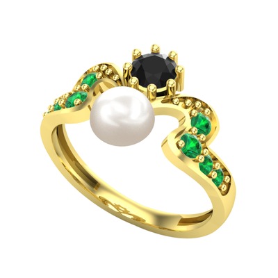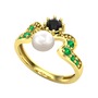 Inci, siyah zirkon ve yeşil kuvars 18 ayar altın yüzük