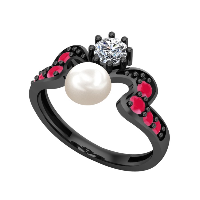 Inci, swarovski ve kök yakut 925 ayar siyah rodyum kaplama gümüş yüzük