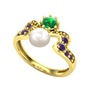 Inci, yeşil kuvars ve ametist 14 ayar altın yüzük
