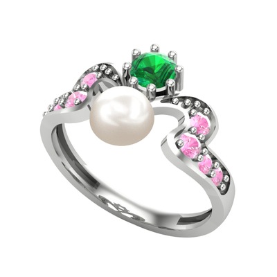 Inci, yeşil kuvars ve pembe kuvars 18 ayar beyaz altın yüzük