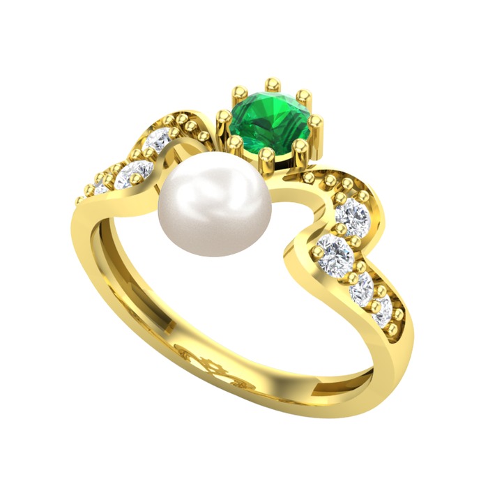 Inci, yeşil kuvars ve pırlanta 14 ayar altın yüzük (0.48 karat)