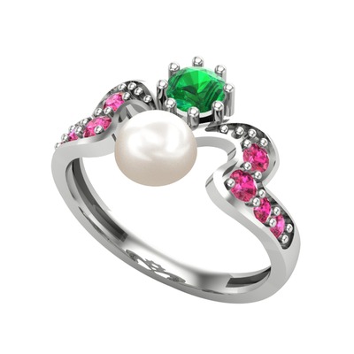 Inci, yeşil kuvars ve rodolit garnet 8 ayar beyaz altın yüzük