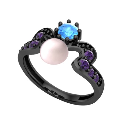 Pembe inci, akuamarin ve ametist 925 ayar siyah rodyum kaplama gümüş yüzük
