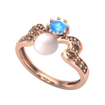 Pembe inci, akuamarin ve dumanlı kuvars 8 ayar rose altın yüzük