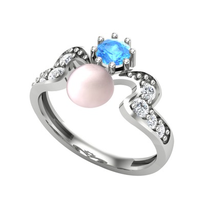 Pembe inci, akuamarin ve pırlanta 14 ayar beyaz altın yüzük (0.48 karat)