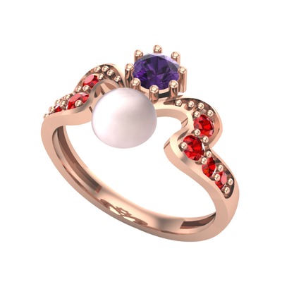 Pembe inci, ametist ve garnet 925 ayar rose altın kaplama gümüş yüzük