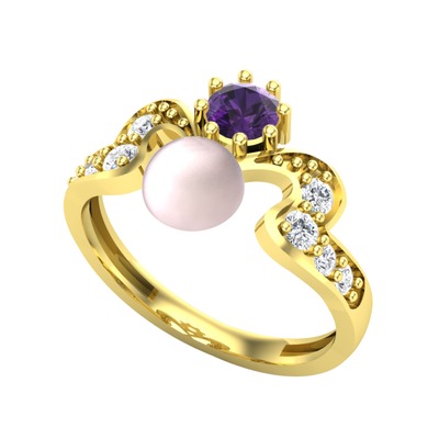 Pembe inci, ametist ve pırlanta 14 ayar altın yüzük (0.48 karat)