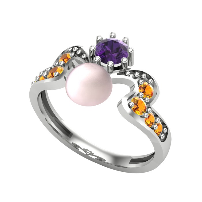 Pembe inci, ametist ve sitrin 18 ayar beyaz altın yüzük