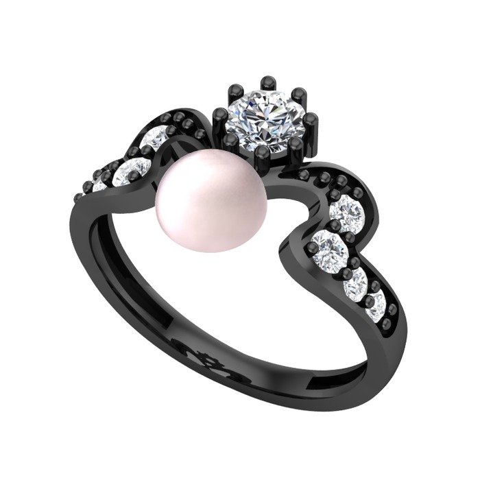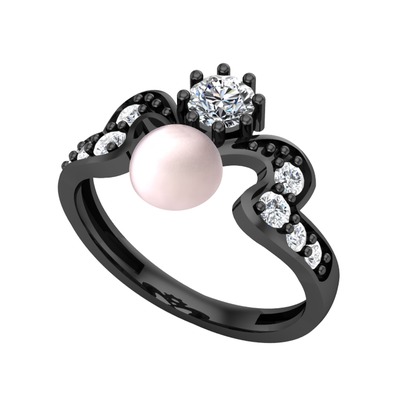 Pembe inci, beyaz zirkon ve pırlanta 925 ayar siyah rodyum kaplama gümüş yüzük (0.48 karat)