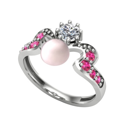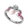 Pembe inci, beyaz zirkon ve rodolit garnet 14 ayar beyaz altın yüzük