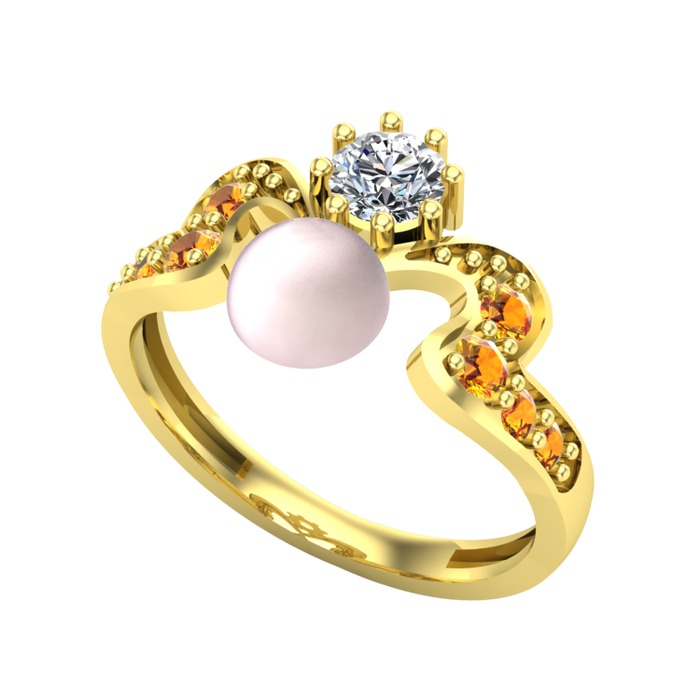 Pembe inci, beyaz zirkon ve sitrin 8 ayar altın yüzük