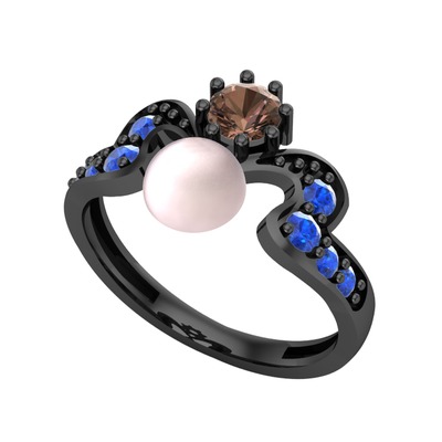 Pembe inci, dumanlı kuvars ve lab safir 925 ayar siyah rodyum kaplama gümüş yüzük