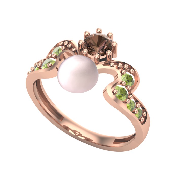 Pembe inci, dumanlı kuvars ve peridot 8 ayar rose altın yüzük