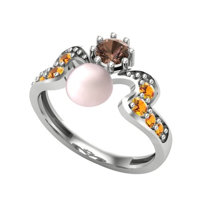 Pembe inci, dumanlı kuvars ve sitrin 14 ayar beyaz altın yüzük