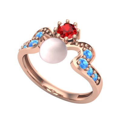 Pembe inci, garnet ve akuamarin 18 ayar rose altın yüzük
