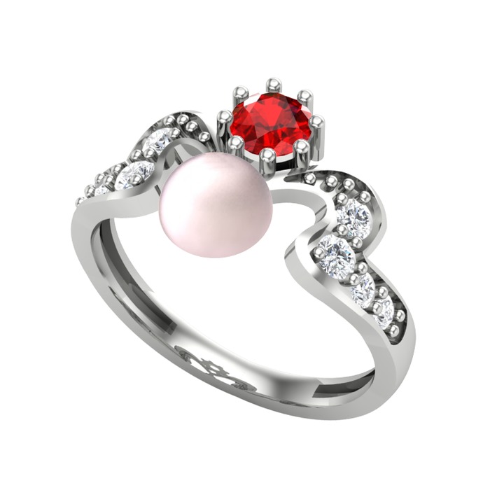 Pembe inci, garnet ve pırlanta 18 ayar beyaz altın yüzük (0.48 karat)