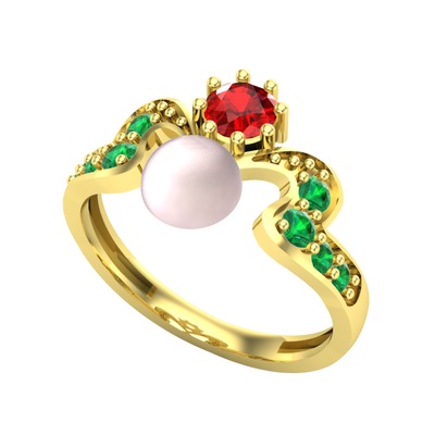 Pembe inci, garnet ve yeşil kuvars 14 ayar altın yüzük