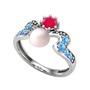 Pembe inci, kök yakut ve akuamarin 925 ayar gümüş yüzük
