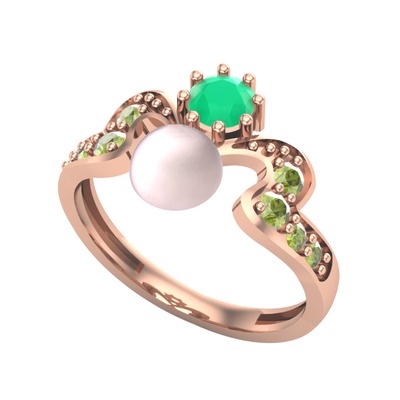 Pembe inci, kök zümrüt ve peridot 14 ayar rose altın yüzük