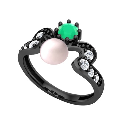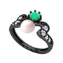 Pembe inci, kök zümrüt ve pırlanta 925 ayar siyah rodyum kaplama gümüş yüzük (0.48 karat)