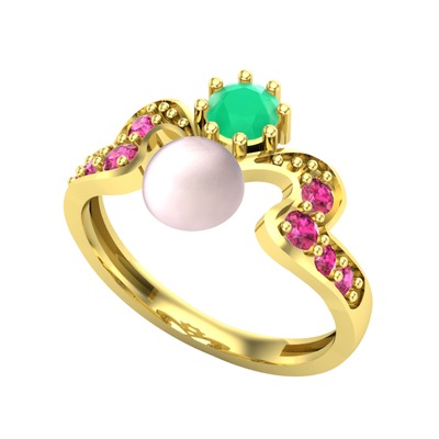Pembe inci, kök zümrüt ve rodolit garnet 8 ayar altın yüzük
