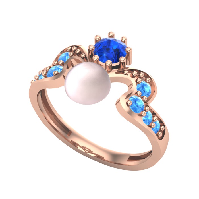 Pembe inci, lab safir ve akuamarin 925 ayar rose altın kaplama gümüş yüzük