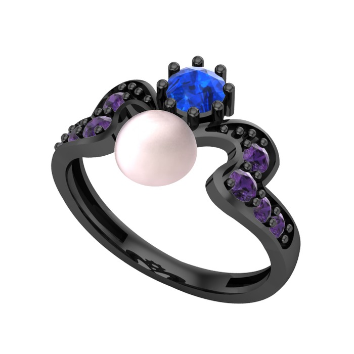 Pembe inci, lab safir ve ametist 925 ayar siyah rodyum kaplama gümüş yüzük