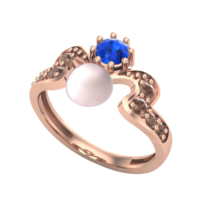 Pembe inci, lab safir ve dumanlı kuvars 8 ayar rose altın yüzük