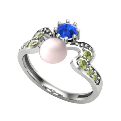 Pembe inci, lab safir ve peridot 18 ayar beyaz altın yüzük