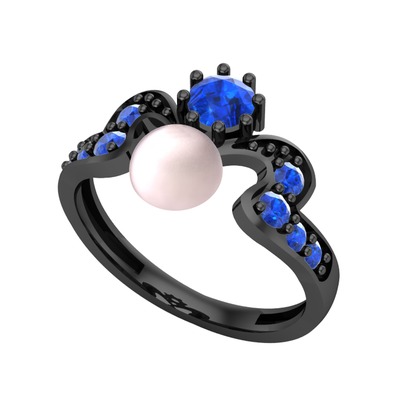 Pembe inci ve lab safir 925 ayar siyah rodyum kaplama gümüş yüzük