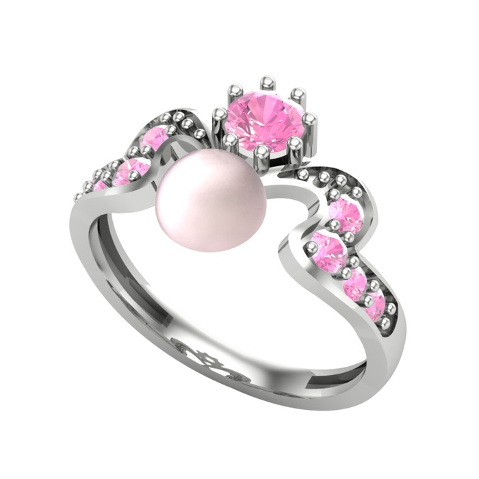 Pembe inci ve pembe kuvars 14 ayar beyaz altın yüzük