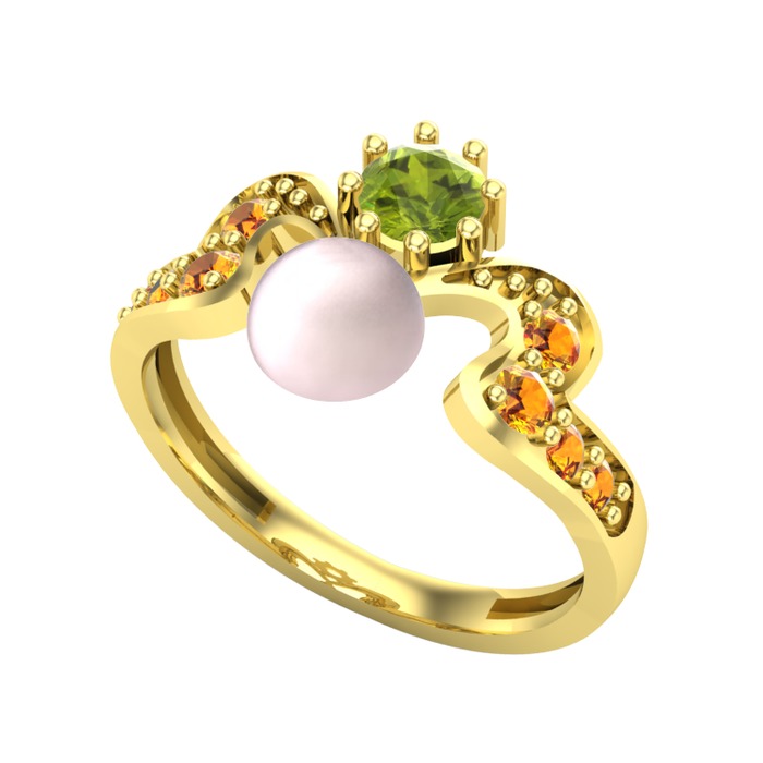 Pembe inci, peridot ve sitrin 8 ayar altın yüzük