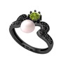 Pembe inci, peridot ve siyah zirkon 925 ayar siyah rodyum kaplama gümüş yüzük