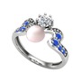 Pembe inci, pırlanta ve lab safir 18 ayar beyaz altın yüzük (0.35 karat)