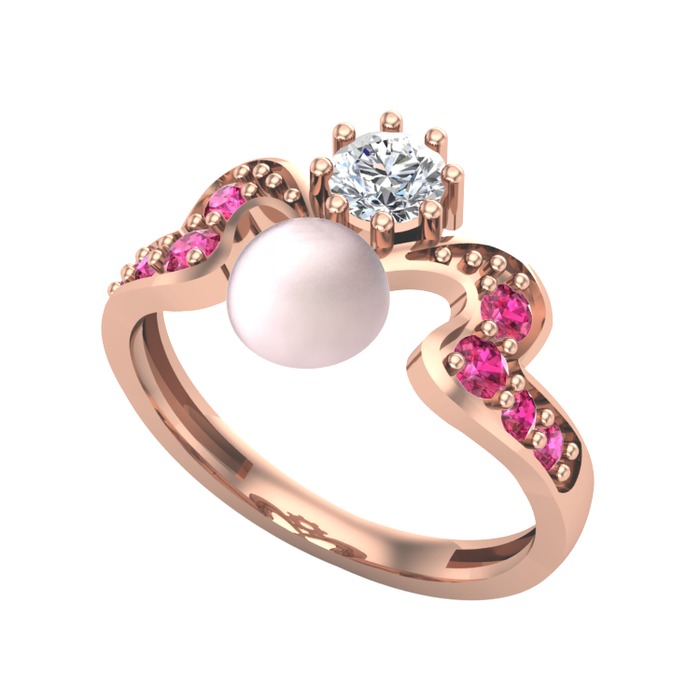 Pembe inci, pırlanta ve rodolit garnet 14 ayar rose altın yüzük (0.35 karat)
