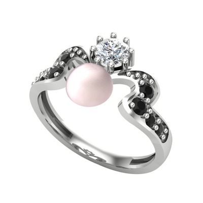 Pembe inci, pırlanta ve siyah zirkon 14 ayar beyaz altın yüzük (0.35 karat)