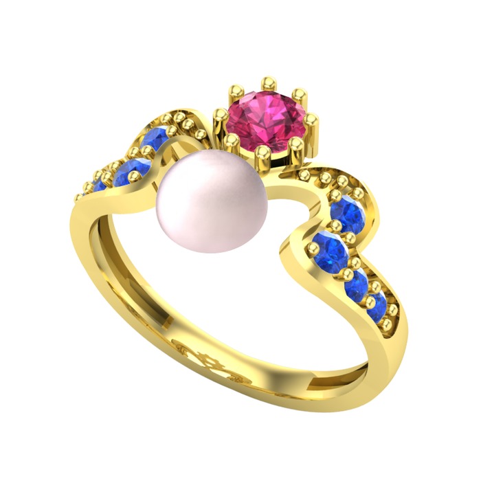 Pembe inci, rodolit garnet ve lab safir 925 ayar altın kaplama gümüş yüzük
