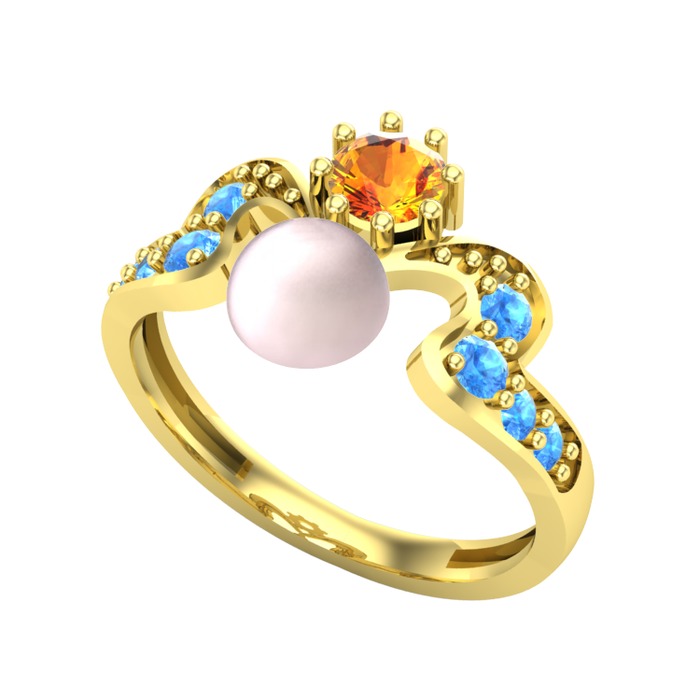 Pembe inci, sitrin ve akuamarin 8 ayar altın yüzük